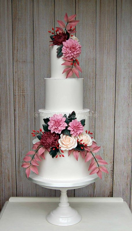 Pampas Grass & Florals Semi Naked Wedding Cake